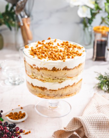 <p>Layers of vanilla cake, banana pastry cream, toffee pieces and whipped cream</p> <p>Small serves 8-10</p> <p>Large serves 15-18</p>