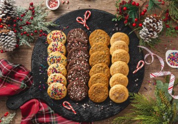 <p>SMALL 34.95 | 16 cookies<br> MEDIUM 64.95 | 36 cookies<br> LARGE 94.95 | 48 cookies</p> <p>• Chocolate Chip<br> • Snickerdoodle<br> • Double Chocolate Peppermint<br> • Sprinkle</p>
