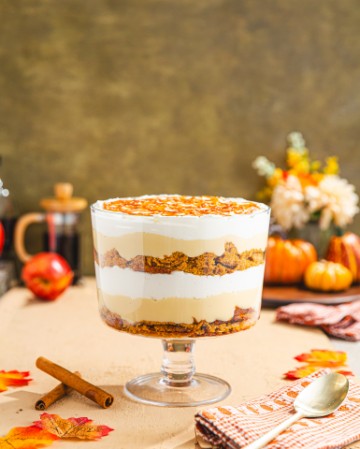<p>Layers of pumpkin cake, maple pastry cream, whipped cream and a caramel drizzle</p> <p>Small serves 8-10</p> <p>Large serves 15-18</p>
